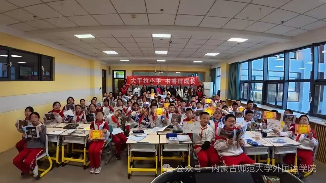 2025年10月23日,我院“语”你同行志愿者服务队与内蒙古师范大学附属学校小学部携手开展“大手拉小手”志愿服务活动。英语系党支部书记呼和塔拉,英语系党支部教师郑坤,团总支负责人徐戌,公共外语系教师王红带队参与。本次活动是英语系党支部“党建引领多元协同服务基层学习”立项项目的关键实践,以“一融双高”建设为切入点,不断推动党建与育人工作的深度融合。