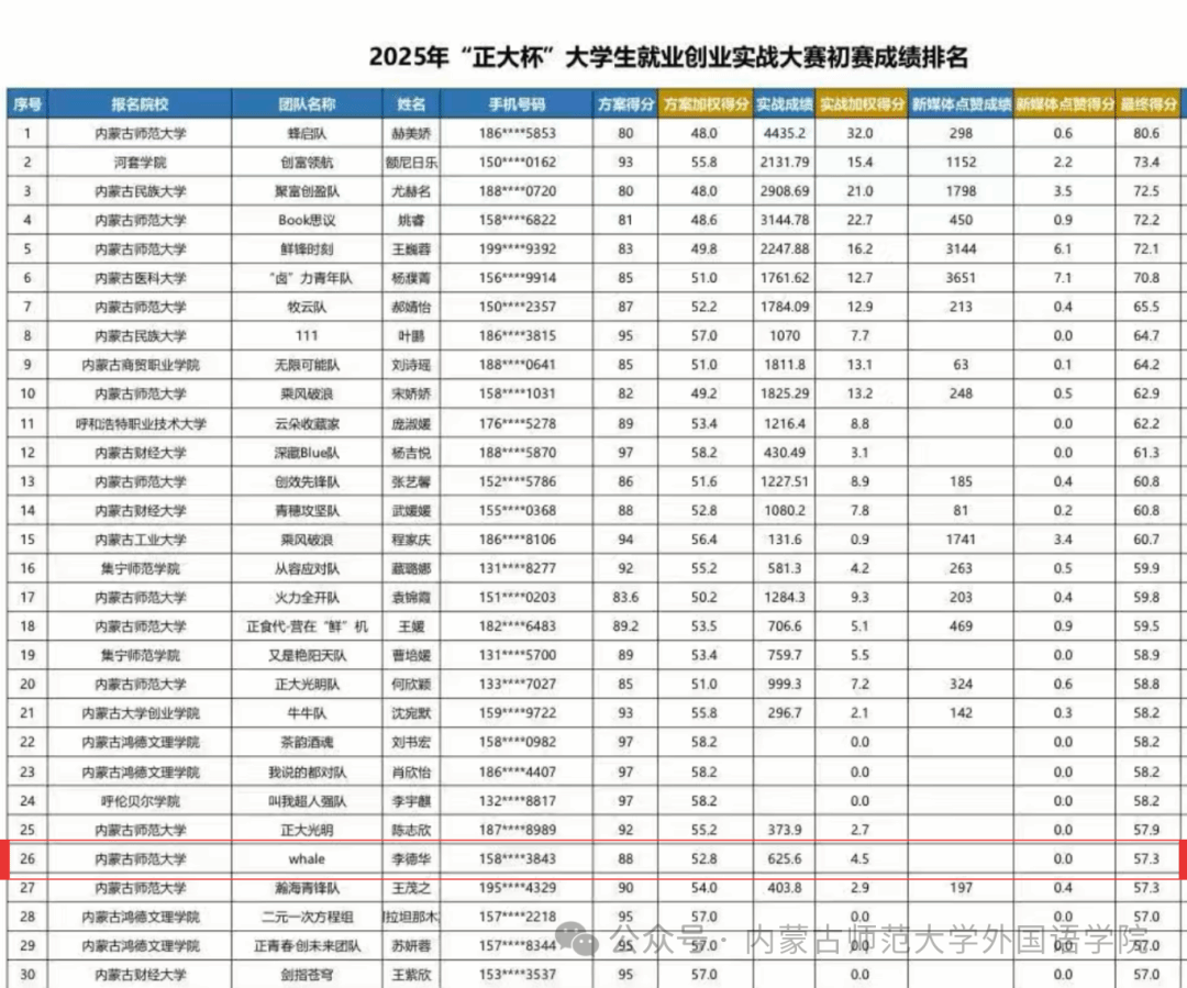 近日,“正大杯”2025大学生就业创业实战大赛实战营销赛道初赛落幕。我院李德华带领的whale战队,在全自治区969支高校队伍中位列第26名,荣获潜力奖。